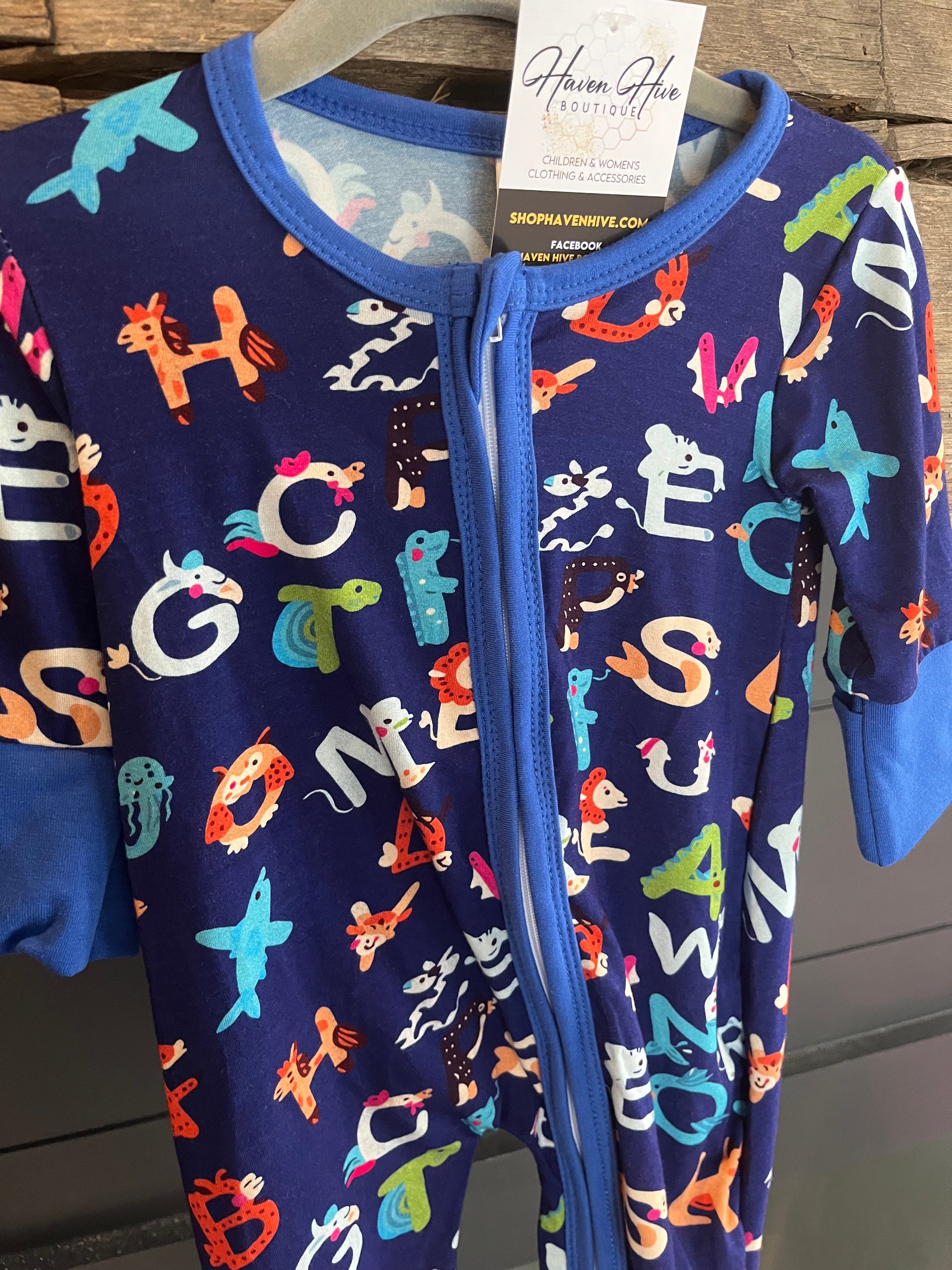 The cutest print on super soft bamboo fabric! Open feet and a 2-way zipper for easy diaper changes!