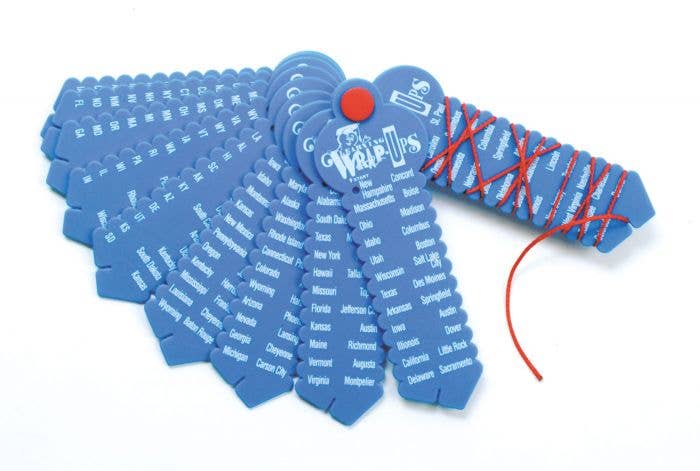 Learning Wrap-ups offer a fun and unique way to help students memorize basic US geography. Students wrap the string from the problem on the left to the answer on the right, and then turn the Wrap-up over to see if they got it right. Use a stopwatch to measure improvement and to see how fast they can really go. Each set contains 10 self-correcting keys and cover all the facts for that operation.