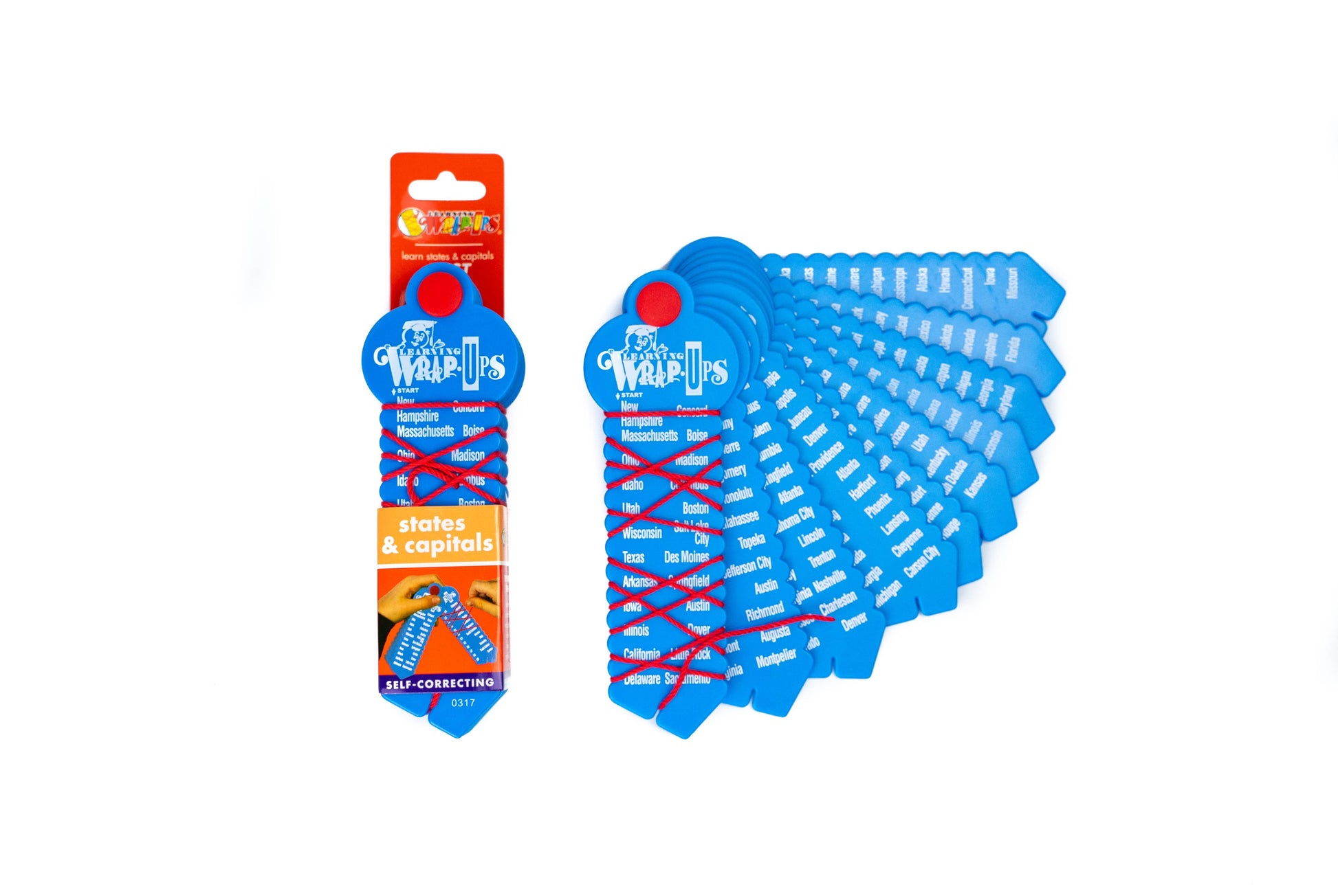 This version of States & Capitals Wrap-ups comes with integrated hang tab packaging for easy display on pegboard style displays. If you prefer packaging without hang tabs, check out the Shrink-Band version of States & Capitals Wrap-ups.