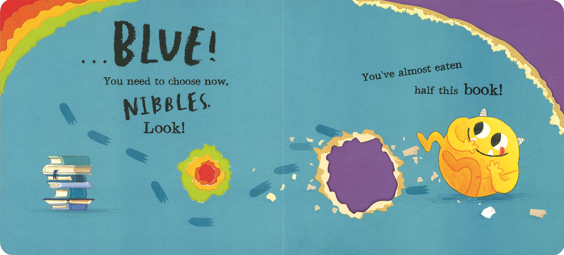 Red and yellow and pink and... CHOMP! Uh-oh! Nibbles the book monster has munched his way into a book of colors! Can you catch him before it’s too late?